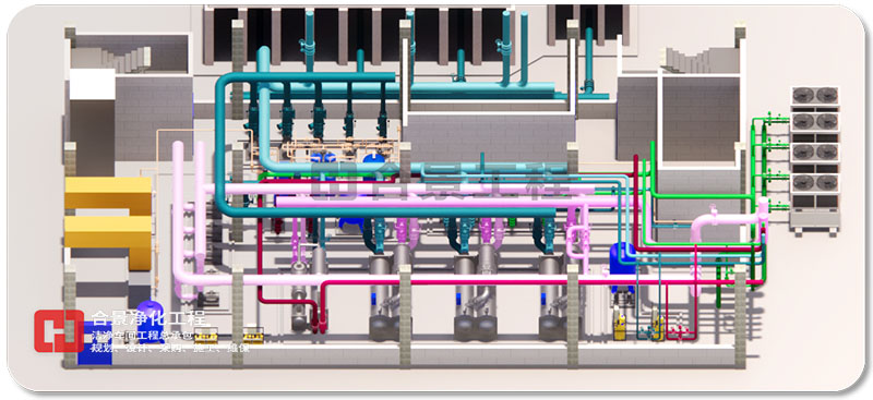 6. 為保證無(wú)吊頂區(qū)域的美觀性,空調(diào)水系統(tǒng)、工藝等管線并列布置;
